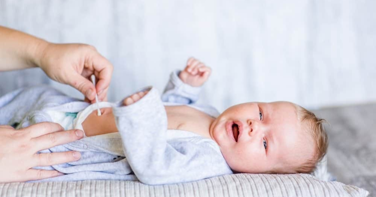 Trẻ khóc hoặc có vẻ đau khi chạm vào rốn hoặc vùng quanh rốn.