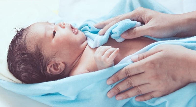 Khiến da trẻ bị khô: Ngay sau sinh, da bé sẽ được bao phủ bởi lớp Vernix (một lớp sáp trắng). Lớp phủ này giúp giữ ẩm và bảo vệ da bé khỏi vi khuẩn trong môi trường. Học viện Nhi khoa Hoa Kỳ (AAP) khuyến cáo rằng mẹ nên để lớp Vernix này trên da trẻ sơ sinh một thời gian để bảo vệ làn da nhạy cảm, đặc biệt là ở những trẻ sinh non.