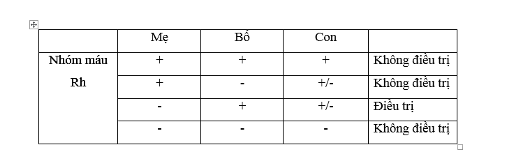Ví dụ đối với thai phụ có nhóm máu Rh (-), bố có nhóm máu Rh(+) thì con sinh ra sẽ có thể mang nhóm máu Rh(+) hoặc Rh(-), nhưng tỉ lệ Rh(+) cao hơn. Và hậu quả là cơ thể mẹ sẽ sinh ra những kháng thể phá hủy hồng cầu của bào thai.