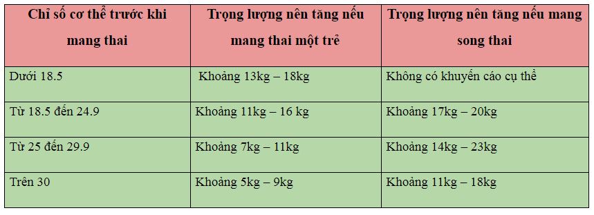 Trường hợp người mẹ mang song thai: nên tăng khoảng 16-20,5 kg.