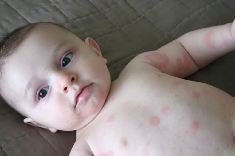 - Da bé xuất hiện nhiều mẩn đỏ và kèm theo những cơn ngứa ngáy làm bé khó chịu.