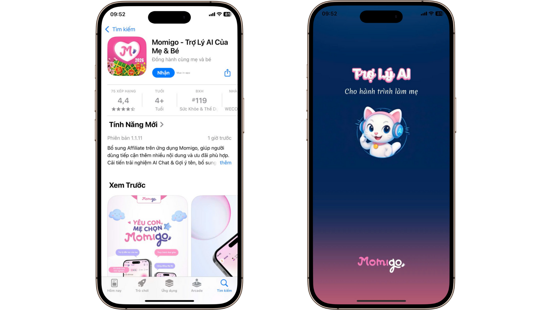 Để bắt đầu hành trình đồng hành cùng Momigo, ba mẹ chỉ cần vài bước đơn giản để tải và cài đặt ứng dụng trên điện thoại. Momigo hiện có sẵn trên cả hai nền tảng phổ biến nhất là iOS và Android.